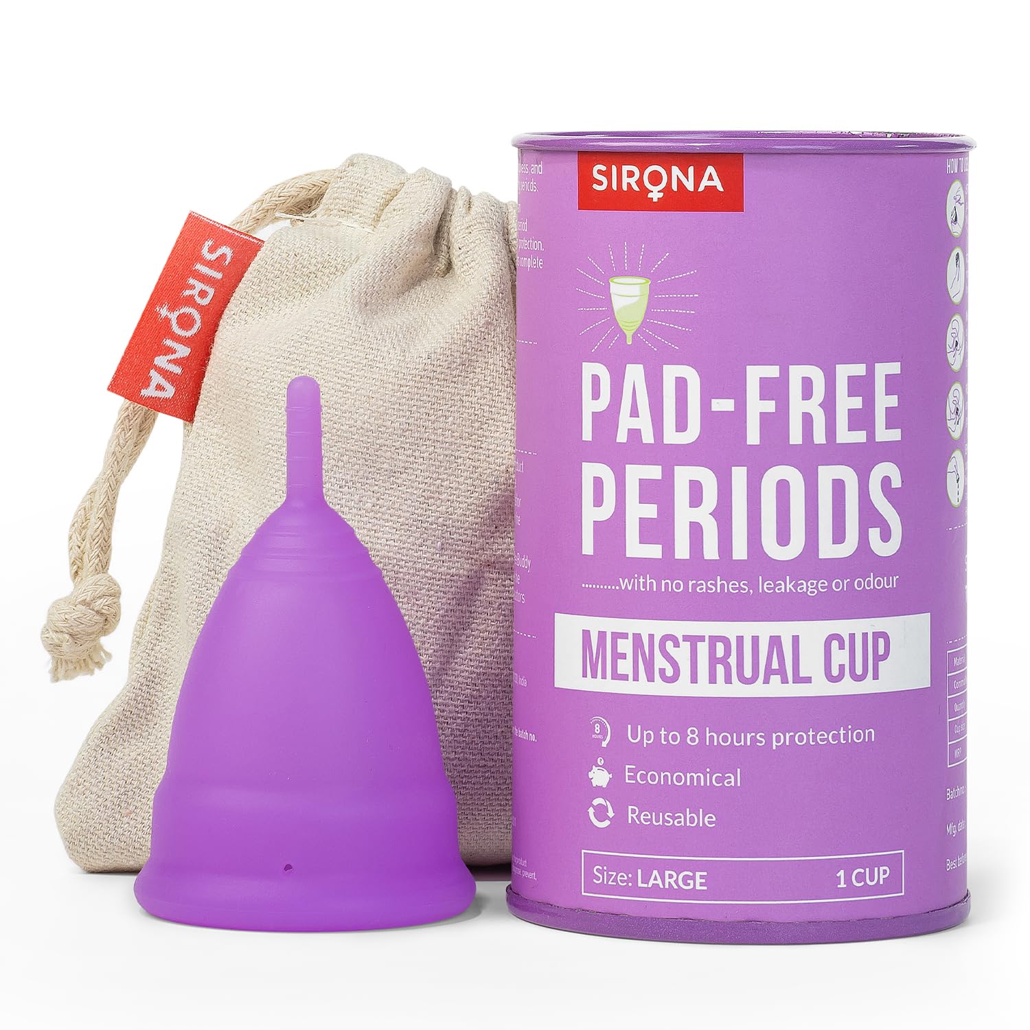 • VARIABLE SIZING: Sirona’s Menstrual Cups come in 3 different sizes. This pack contains one LARGE size menstrual cup ideal for those 35 years of age and above, with heavier than usual flow and have given birth.